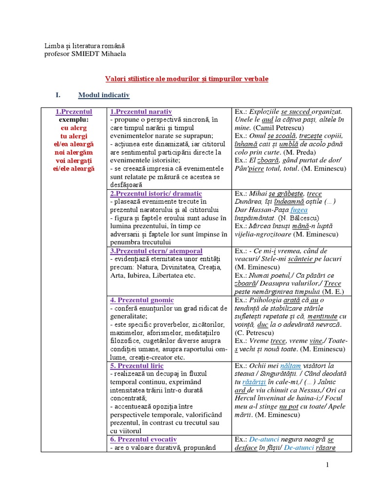 Valorile Stilistice Ale Timpurilor Verbale Pt Bac 2